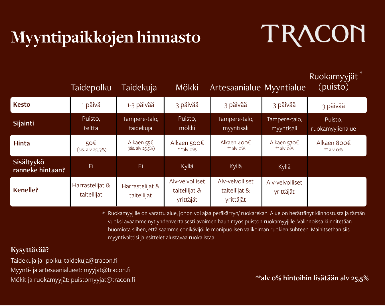 Mökit ja ruokamyyjät: puistomyyjat[at]tracon.fi